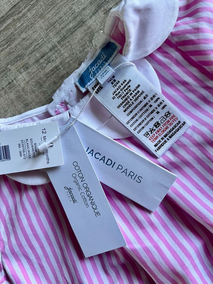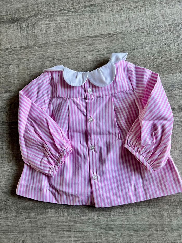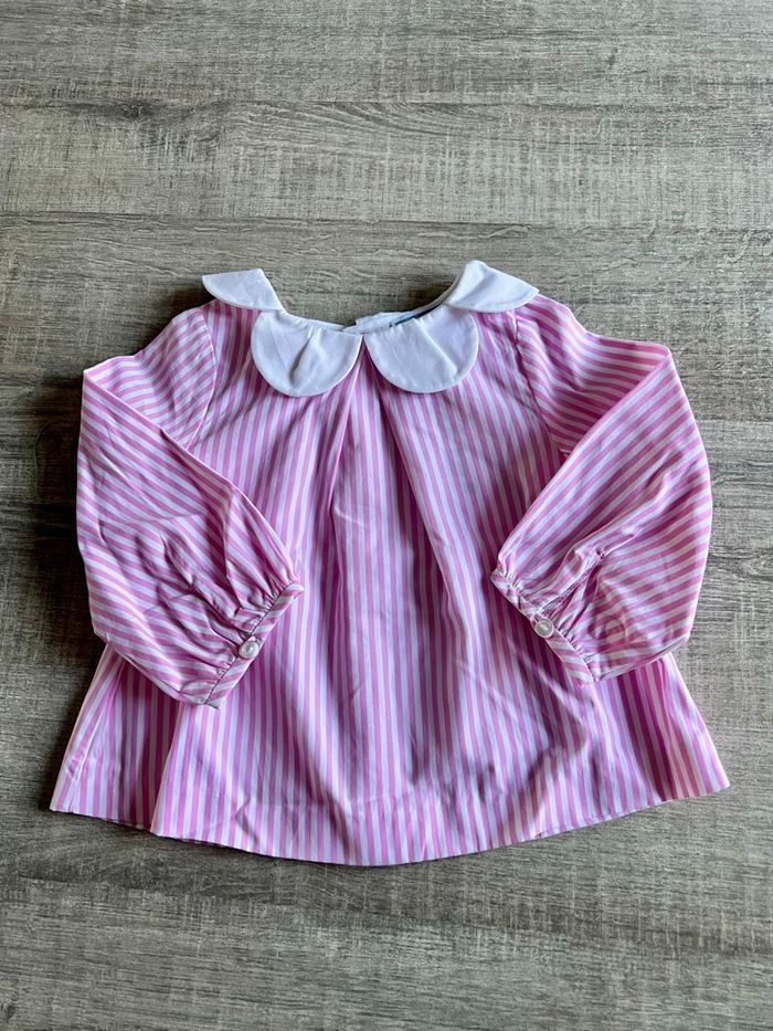 Blouse rayée rose et blanche avec col en forme de fleur Neuve avec étiquette