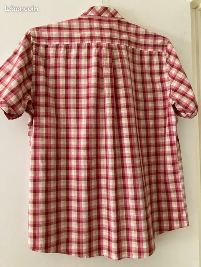 Chemise manches courtes avec pli d'aisance dans le dos 100 % coton à carreaux très bon état taille 4 ép/ép 45 côté/coté 55 col/bas 80