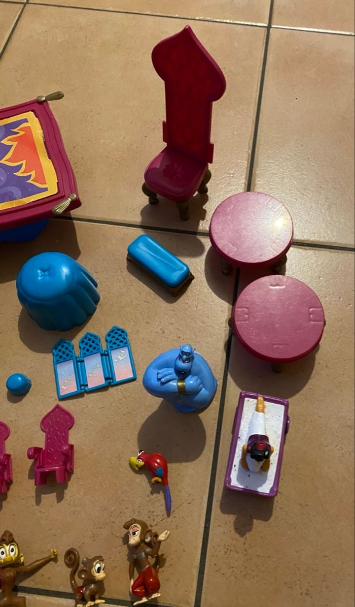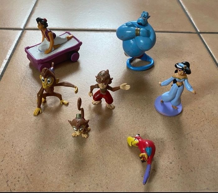 Lot de 7 figurines du dessin animé Aladdin : - Iago - Jasmine - Le génie - Abu avec sa femme et son bébé - Aladdin Seule la figurine d’Aladdin provient du McDo Vous achetez ce que vous voyez sur les photos
