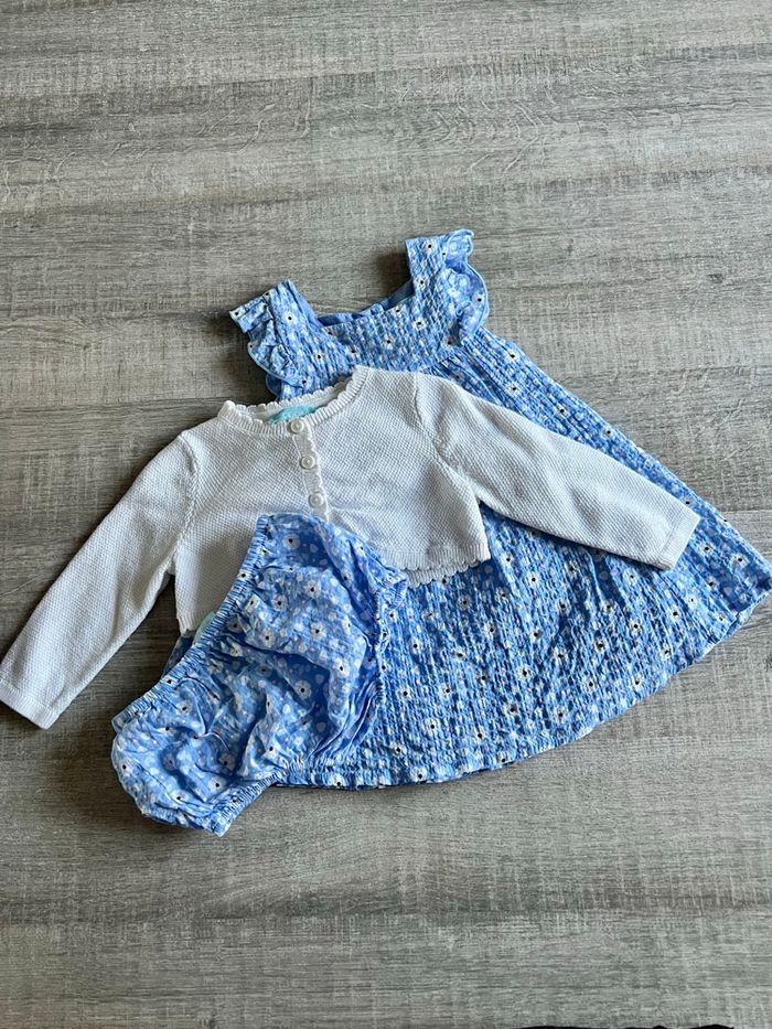 Robe d’été, cache-couche assorti et gilet blanc Jamais porté