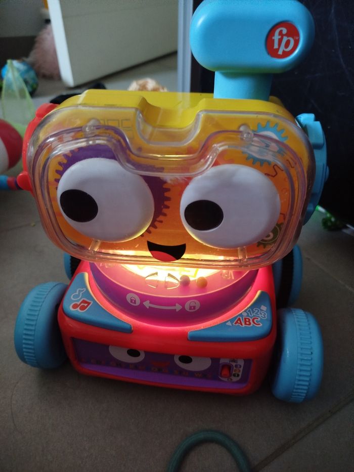 QUATRE FAÇONS DE S'AMUSER - Les tout-petits dès 6 mois apprennent l'alphabet, les couleurs, les chiffres et les formes grâce à ce jouet Fisher-Price offrant plus de 120 sons, chansons et expressions LES ACTIVITÉS - Comprennent la course poursuite à quatre pattes. Bébé s'amusera à appuyer sur l'antenne du robot et à lui faire tourner les oreilles. Ce jouet Fisher-Price propose des activités uniques TROIS NIVEAUX D'ÉVEIL - La technologie Éveil Progressif vous permet de modifier le contenu d'apprentissage en fonction de l'âge de l'enfant. Les chansons et phrases rendent l'apprentissage passionnant S'AMUSER en assemblant le robot - Les enfants peuvent jouer avec les différentes parties du robot ou les combiner afin d'obtenir un jouet interactif qui offre de nouveaux sons, musiques et expressions CADEAU IDÉAL DÈS 6 MOIS - Appuyez sur un bouton pour lancer la musique, les lumières, et faire bouger le robot. Comprend trois niveaux pour accompagner les bébés et les enfants jusqu'à l'école