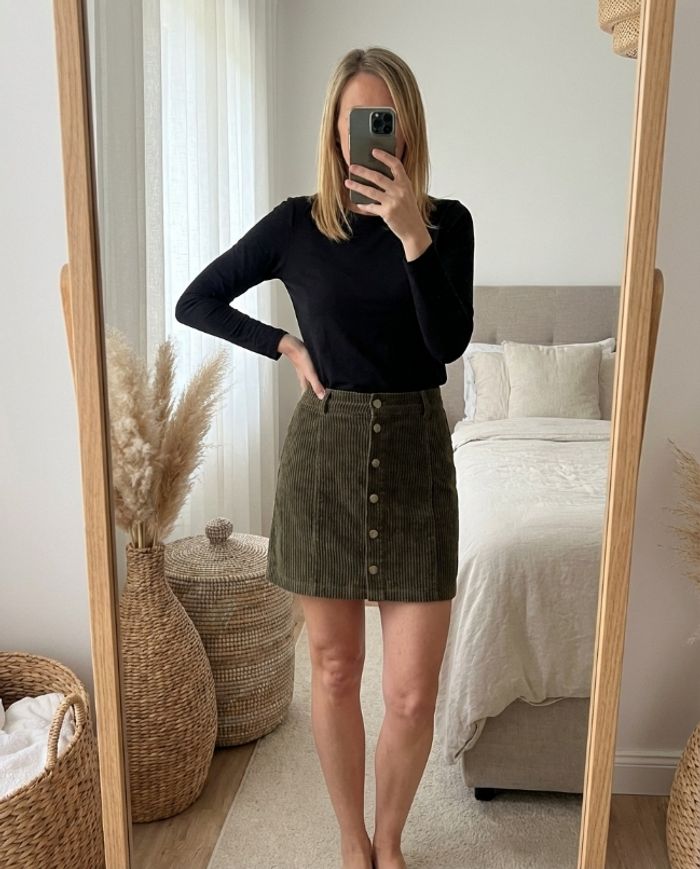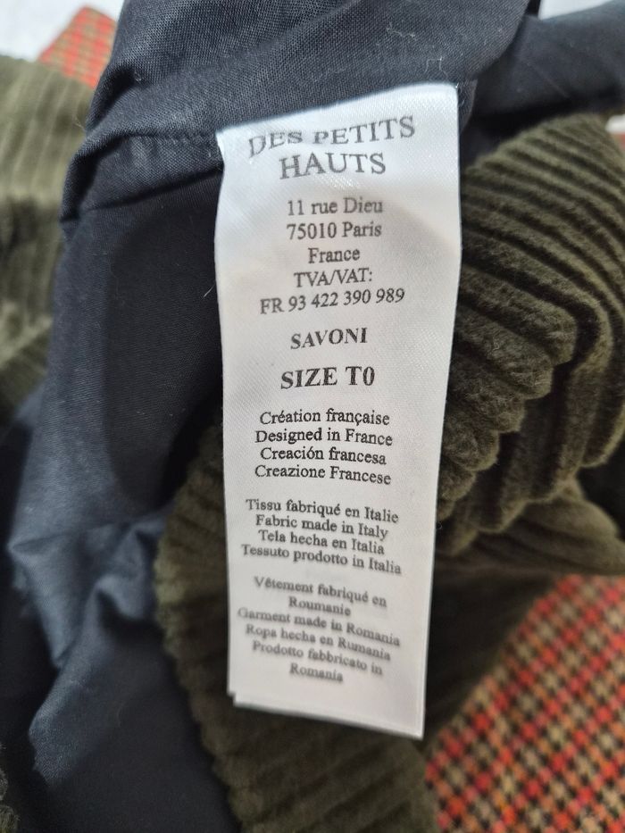 Très jolie jupe Des Petits Hauts, modèle Savoni, en velours côtelé kaki. ✔ Taille : 0 (équiv. 34) ✔ 100% coton ✔ Tissu fabriqué en Italie ✔ Entièrement doublée coton ✔ Coupe légèrement trapèze ✔ Bouton décoratif sur le devant ✔ Très bon état Couleur kaki intemporelle, parfaite pour l’automne/hiver. Se porte facilement avec un pull écru, des collants et des bottines. Qualité haut de gamme et belle tenue du velours. #femmevicmode #jupevicmode #despetitshautsvicmode #despetitshauts #jupekaki #velourscotele #jupe34 #taille34 #modefemme #marquefrancaise #lookautomne #styleboheme #jupehiver #jupetaille34 #cotton100
