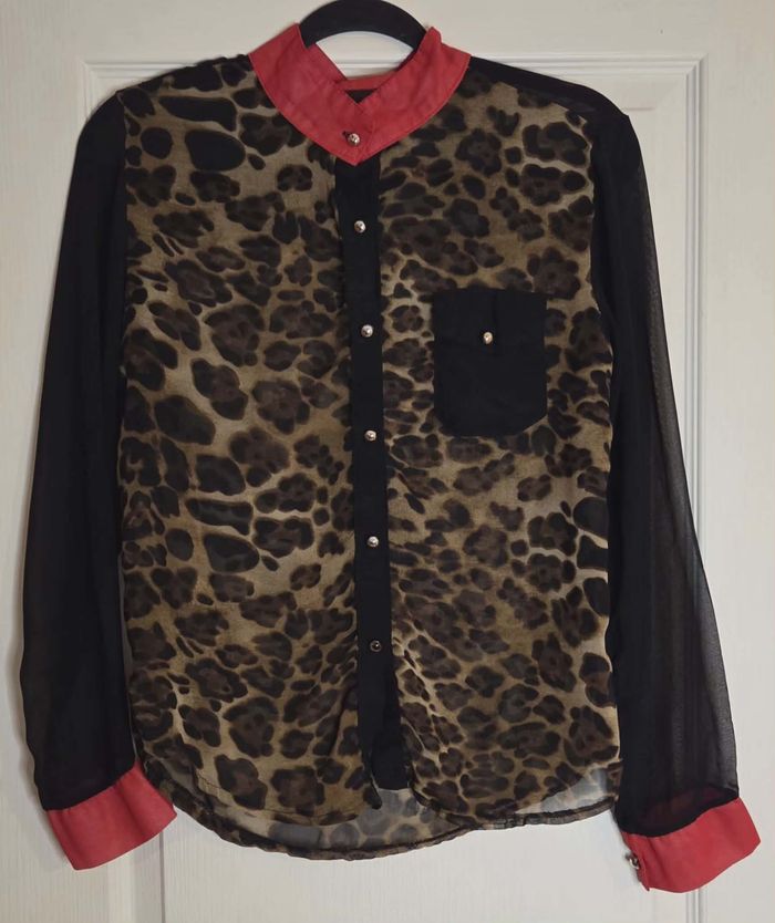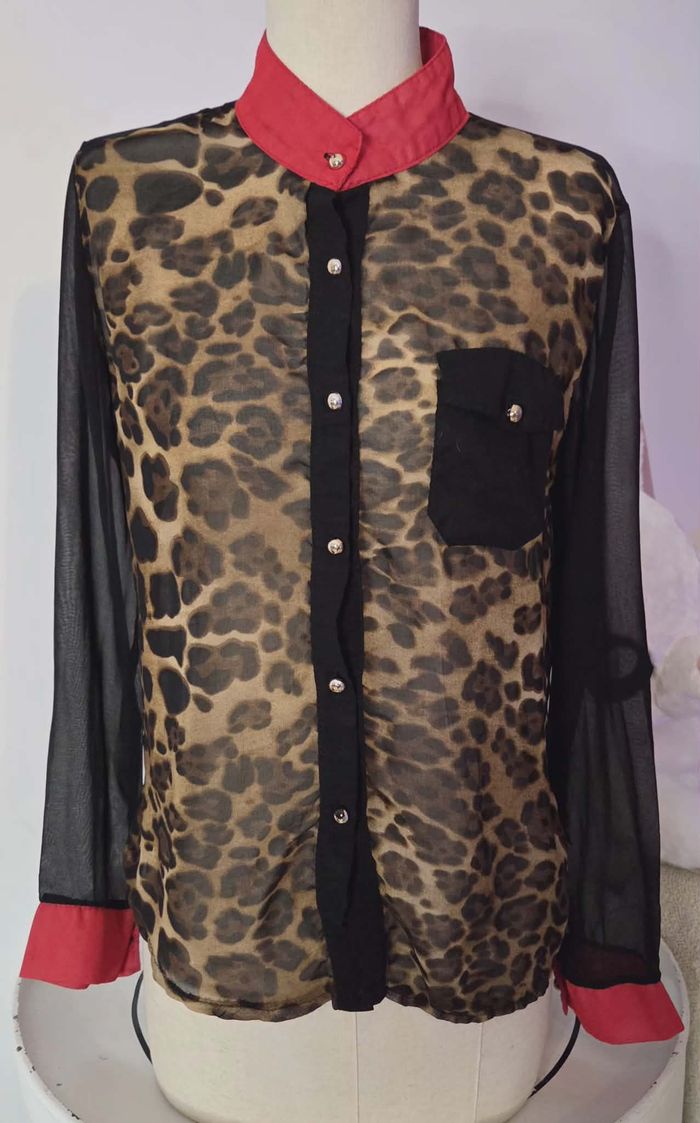 BALUOKE – Chemisier Léopard & Manches Voile – 36/38 – Chic & Audacieux - photo numéro 1