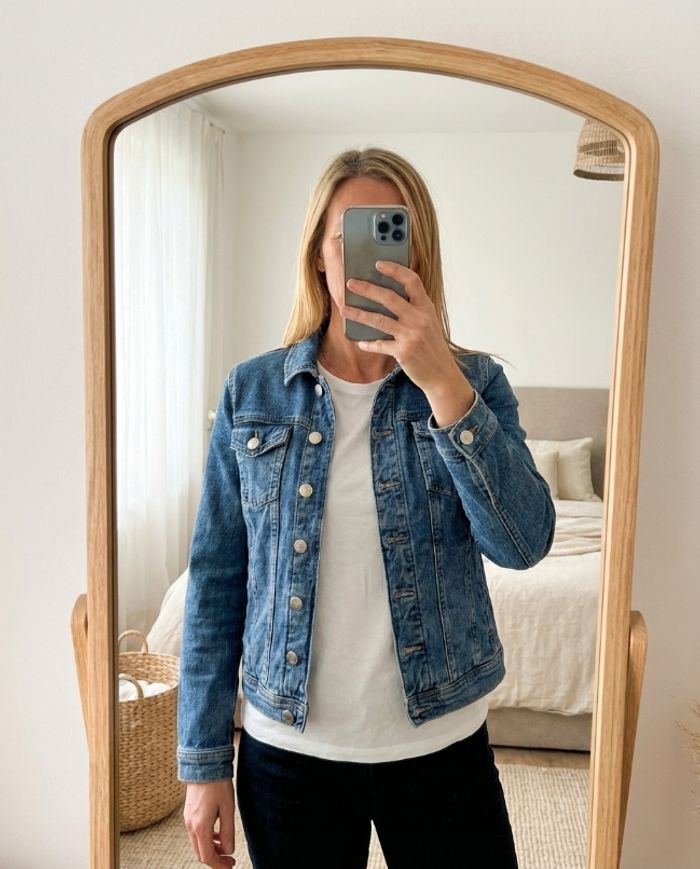 Veste en jean Sézane Denim, coupe féminine et structurée. Denim bleu intemporel, légèrement stretch pour un confort parfait. ✔ Taille : XS ✔ Matière : 98% coton (dont fibres issues de l’agriculture biologique), 2% élasthanne ✔ Doublure poches 100% coton ✔ Très bon état Coupe flatteuse, idéale avec robe, jupe ou jean taille haute. Pièce facile à porter toute l’année. #femmevicmode #vestevicmode #sezanevicmode #sezane #sezanedenim #vesteenjean #vestedenim #jeansezane #taillexs #modefemme #lookparisien #denimjacket #printemps #été #stylefemme #casualchic #basiqueintemporel #cottonbio #vestexs #sezanelovers