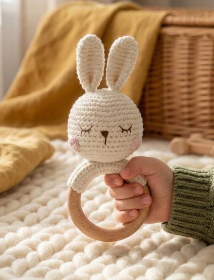🐰🧶 Hochet lapin au crochet 🤍✨