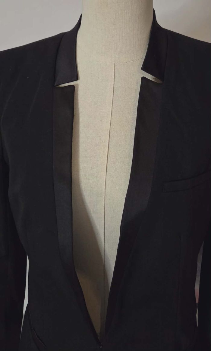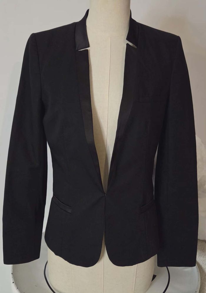 NAF NAF – Blazer Noir Chic Revers Satin – Taille 36 – Coupe Cintrée Élégante