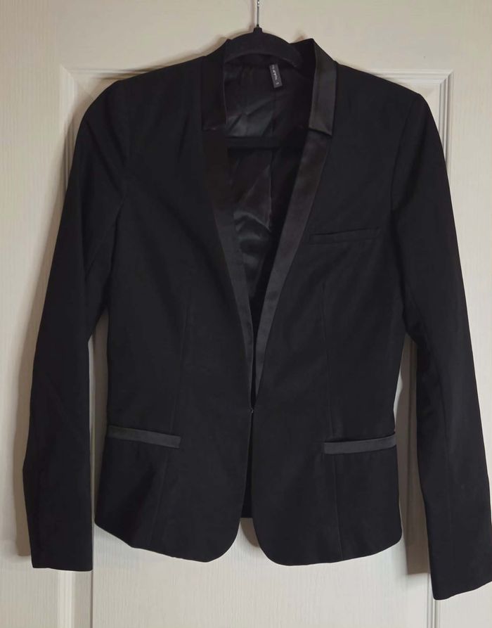 NAF NAF – Blazer Noir Chic Revers Satin – Taille 36 – Coupe Cintrée Élégante - photo numéro 1