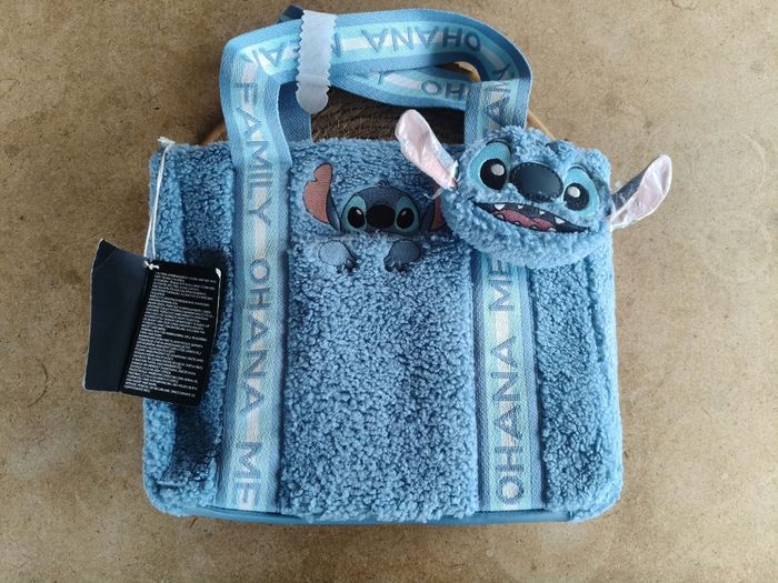 Univers : Disney Stitch Format : Tote bag + Porte-monnaie Marque : Loungefly État : Neuf, jamais utilisé Description : Sac Loungefly Stitch jamais utilisé. Il a été conservé dans une armoire vitrée avec ses protections. Le sac peut se porter à main ou sur l’épaule. Il y a avec un petit porte-monnaie qui peut être détaché. Le sac a également une pochette sur le devant. Le porte-monnaie présente un léger défaut de couture sur le nez mais cela se voit à peine.