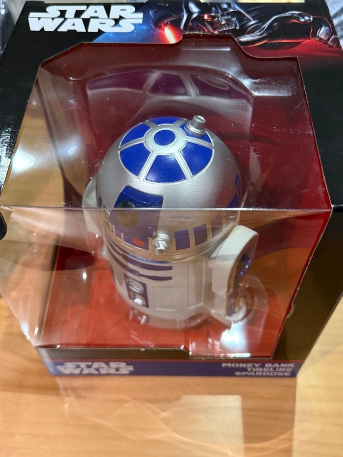 Star Wars Tirelire R2D2 Neuf , jamais ouvert . - Matière : vinyle PVC - Dimensions : hauteur 16,5 cm Valeur neuf : 25€ #starwars #lucasfilm #r2d2 #merchandising #merchandise #r2d2starwars #droïde #droidestarwars