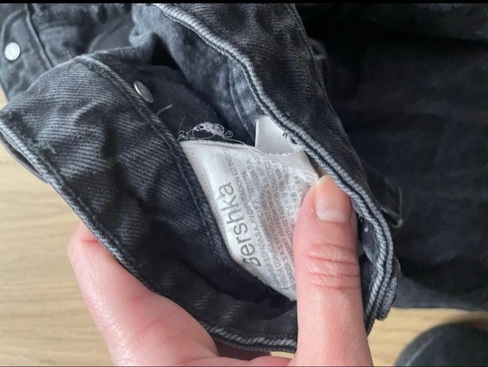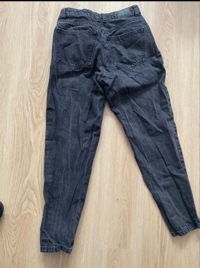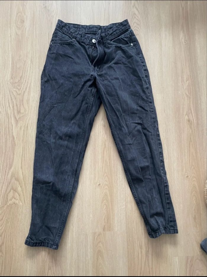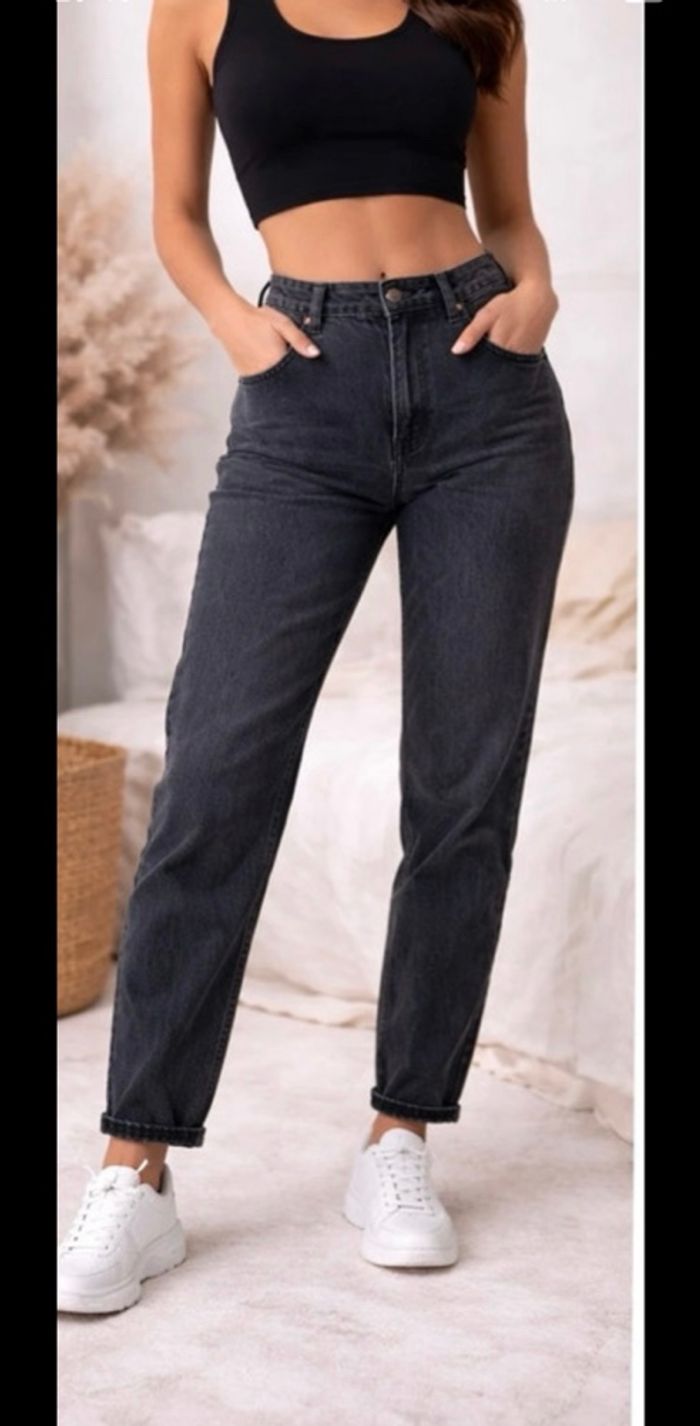 Jean noir délavé , coupe tapered , taille mi haute, style casual