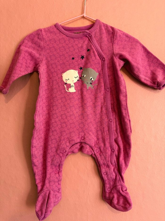 trop mignonne grenouillère orchestra en coton rose tout doux 🩷 taille 3 mois, en très bon état. de jolis petits motifs chat 🐱 pour un look craquant et confortable à la fois 😍 tissu léger et agréable sur la peau, idéale pour la nuit ou les journées cocooning 👶 pressions pratiques pour habiller bébé facilement ✨ 💌 n’hésite pas à regarder mes autres articles