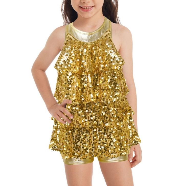 Costume de danse Dorée à paillettes Short intégré doré Neuve avec étiquette Taille 9 ans Remise en main propre sur Dax Envoi possible