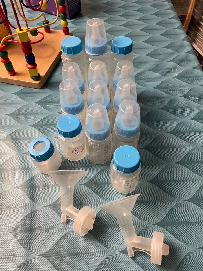 Lots de biberon bon état certain chiffre sont effacer et étiquette coller sur certain voir photo Le lots comprend - 3 de 240 ml -10 de 130 ml - 1 de 80 ml - téterelle qui se vice sur les pots