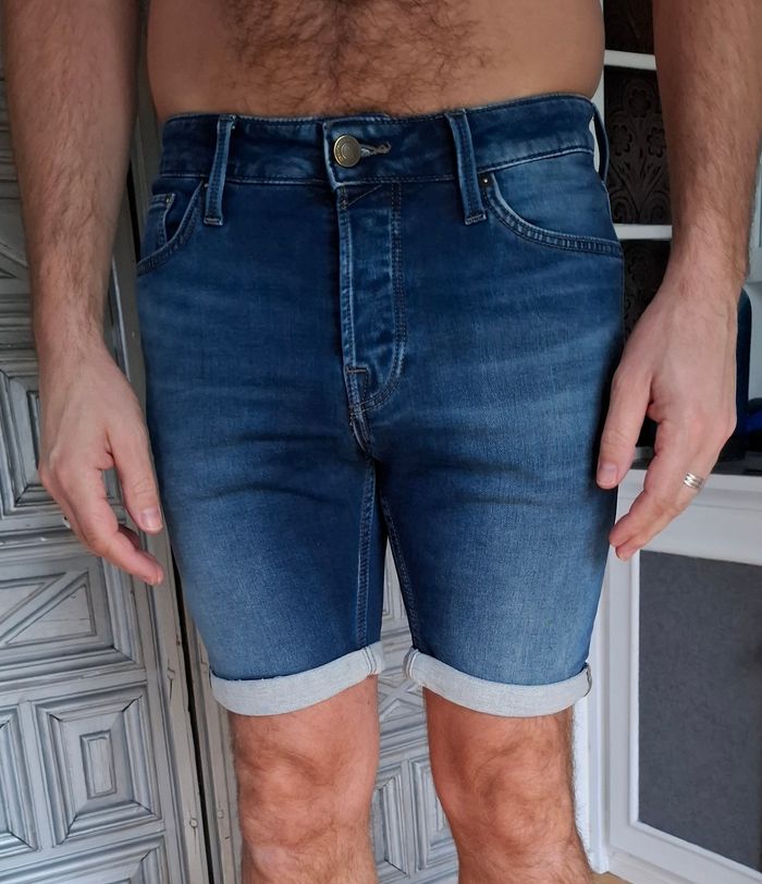 bermuda en jean JACK & JONES bleu, taille S, coupe regular, très bon état
