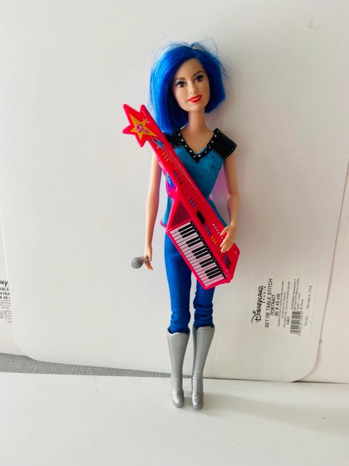 Poupée barbie cheveux bleu Rock'n royale guitare synthétiseur Neuve Pas jouer avec