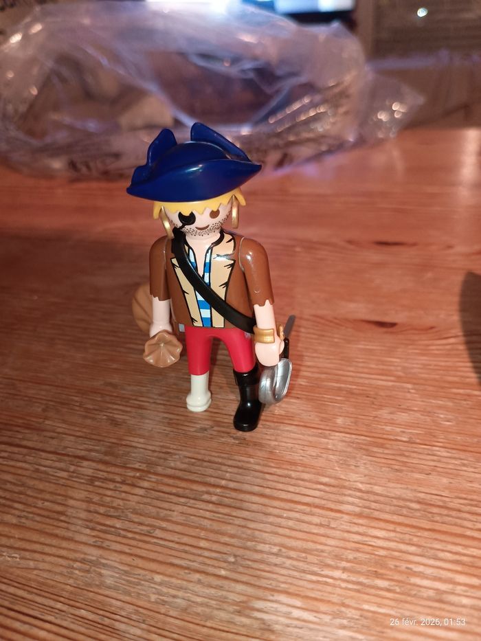 Je vends cette figurine Playmobil pirate avec tous ses accessoires. Un personnage coloré et détaillé, parfait pour les enfants qui adorent les aventures en haute mer ! - Type de produit : Figurine - Marque : Playmobil - Thème : Pirate - Âge recommandé : De 4 à 6 ans - Composition du lot : 1 figurine pirate, 1 sabre, 1 sac de trésor, 1 crochet - Matière : Plastique Très bon état. N'hésitez pas à me contacter pour plus d'infos ou de photos !