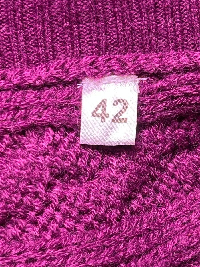 Robe pull violet mauve Taille 42 La mesure d'aisselle à aisselle est de 49 cm. La longueur est de 82 cm. 100% Acrylique