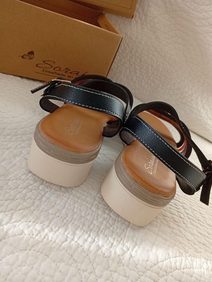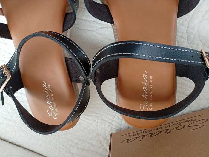Remise sur lot activé. Sandales/ Nu-Pieds en cuir synthétique jamais portées, toujours avec sa boîte d'origine. Marque : Soraia Pointure: 39 Fabriquée en Espagne. #sandalescompensées #sandalesaplateforme #sandalessoraya #sandales39 #nupiedfemme39