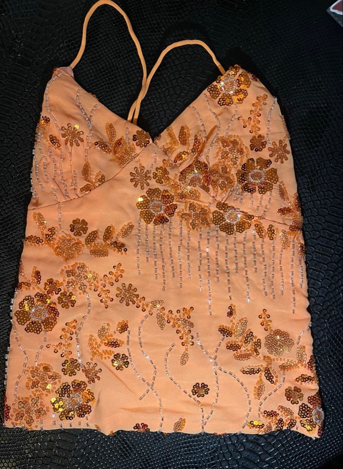 Haut style Ibiza taille S orange plage strass perle  - photo numéro 1