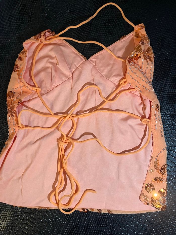 Haut style Ibiza taille S orange plage strass perle  - photo numéro 3