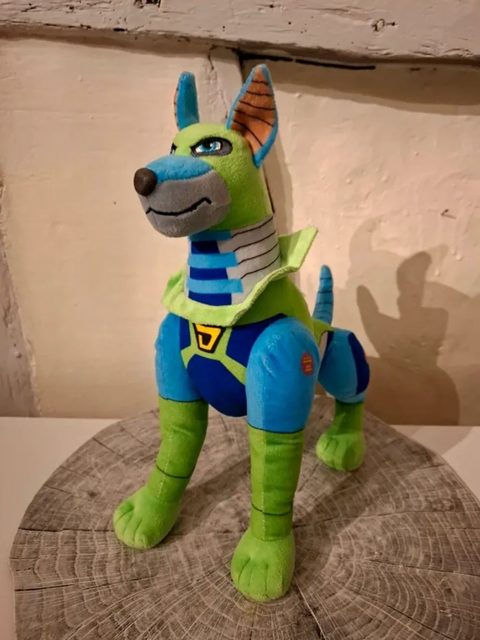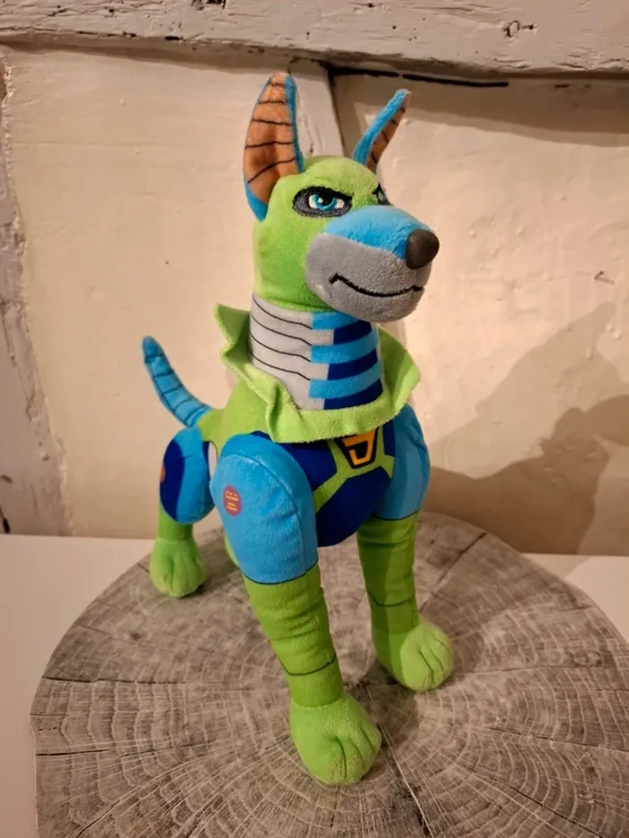 Peluche du doberman Dynomutt issu du film d’animation SCOOB! Dimension : 32 cm de hauteur Fabricant : Play by Play