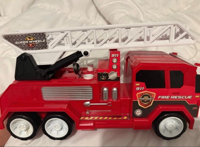 Camion de pompier avec lance à eau ( réservoir pour mettre l’eau) jamais utilisé la lance à eau Envoie dès demain