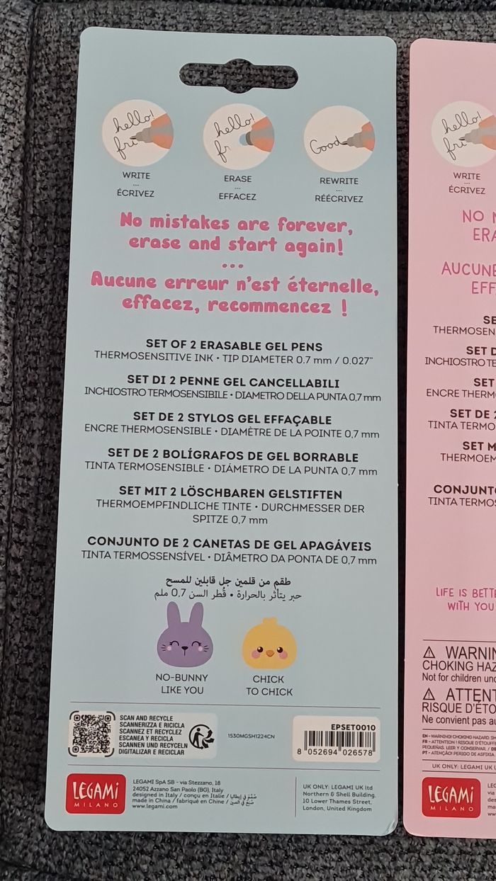 Legami Effaçables - NEUFS = 2 Stylos -> 1 Set PAQUES 2025 : LIMITED EDITION 2 Stylos LEGAMI effaçables : Collection Pâques 2025 - Neufs - Lapin de Pâques 🐇 - Poussin de Pâques 🐤 Édition Plus Commercialisée Définitivement depuis près de 1 an Edition Plus Commercialisée Définitivement Neufs - Authentiques LEGAMI Au besoin, nous avons toutes les éditions Legami Effaçables et Lovely Friends qui existent depuis leurs débuts en 2020, toutes les éditions les plus recherchées, tout n'est pas encore en ligne, nous demander 🥰