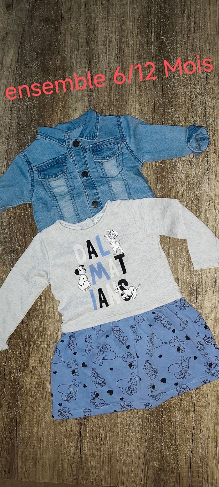 Jolie robe Disney (Dalmatiens) avec une jolie veste en jean 6/12 Mois en très bon état