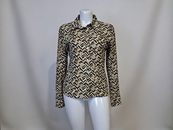 chemisier imprimé marron beige et noir Taille 2 Bouton de rechange Neuf