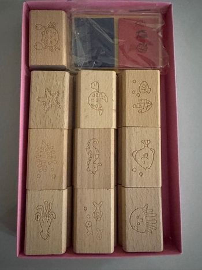 Lot de 2 ensemble de tampon : - tampons lettres - 1 animaux marins Déjà utilisé mais reste en bon état