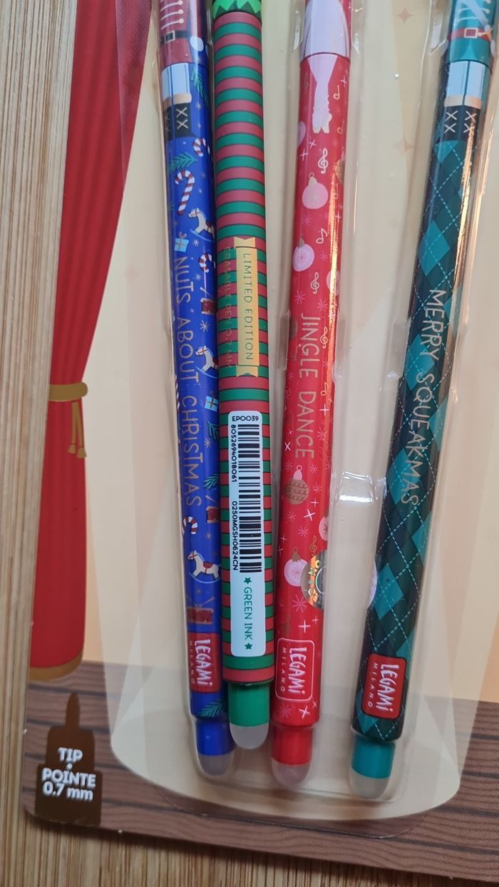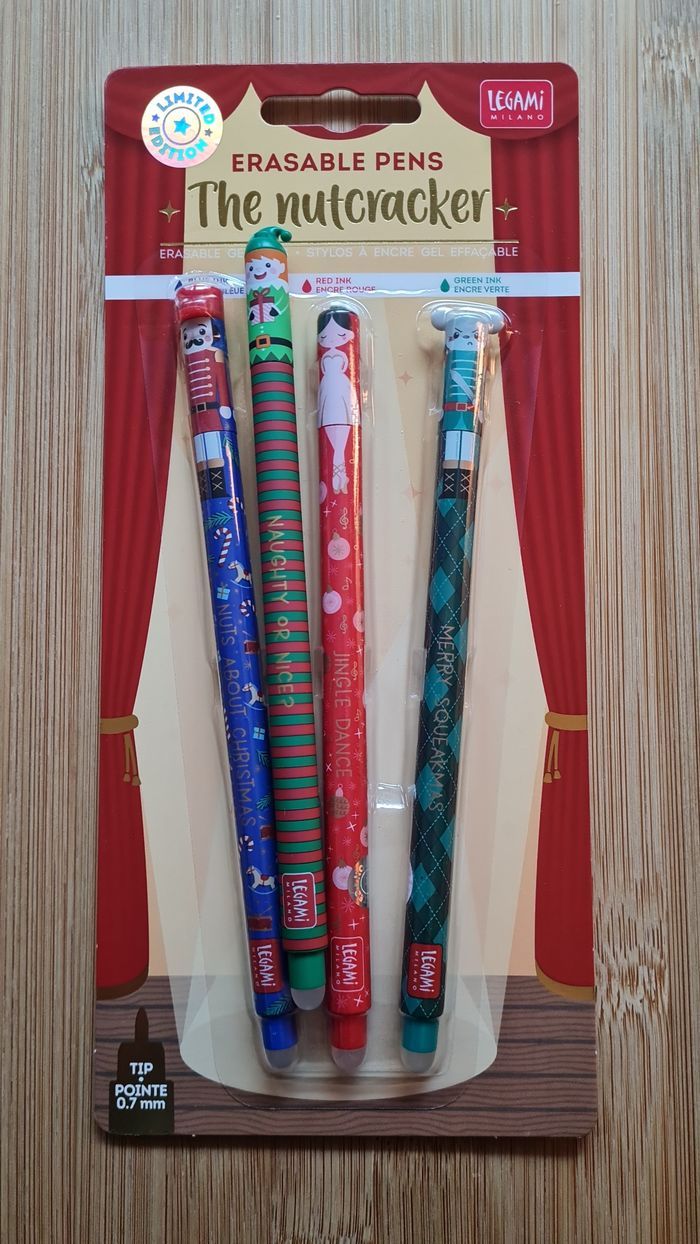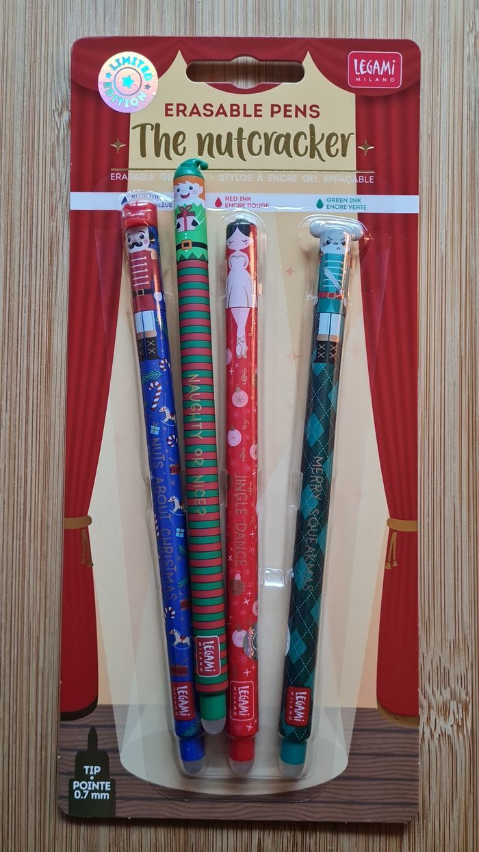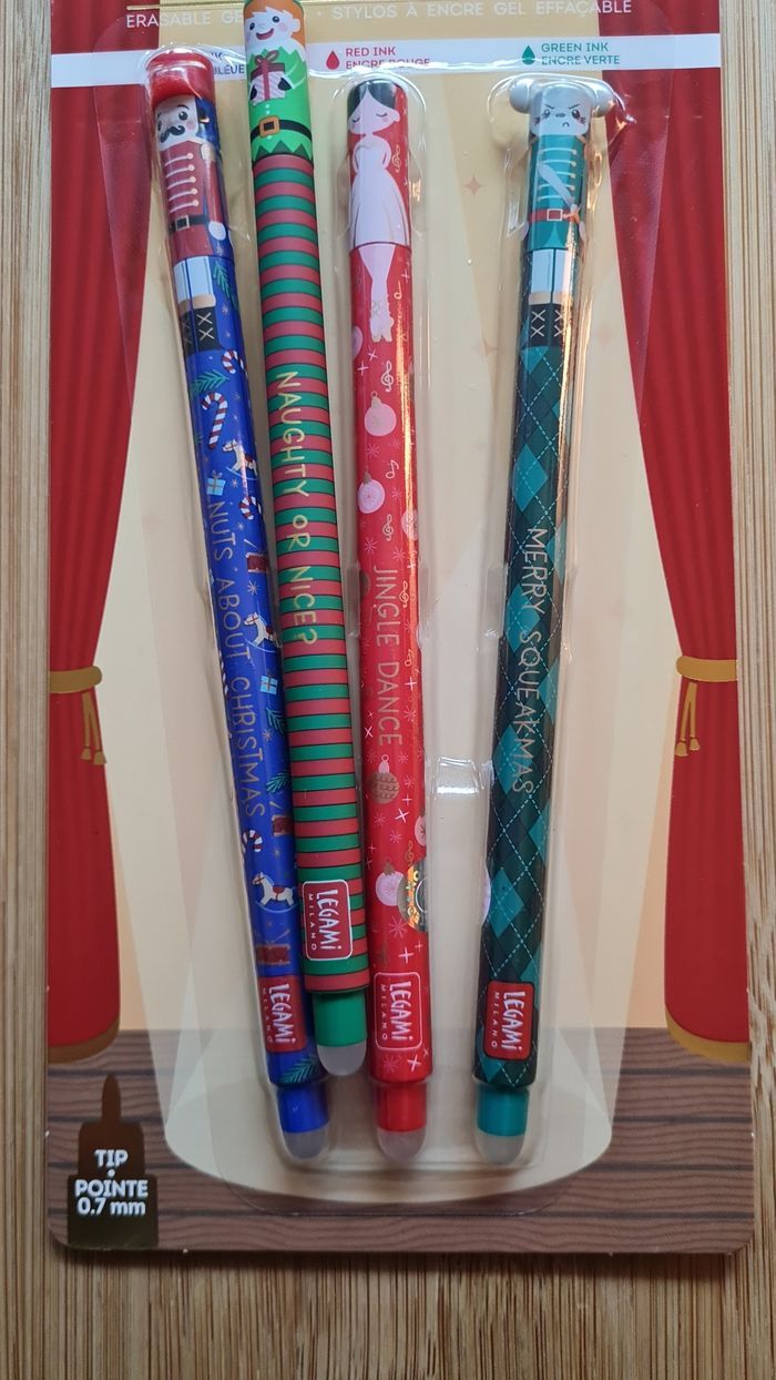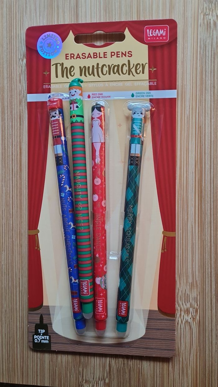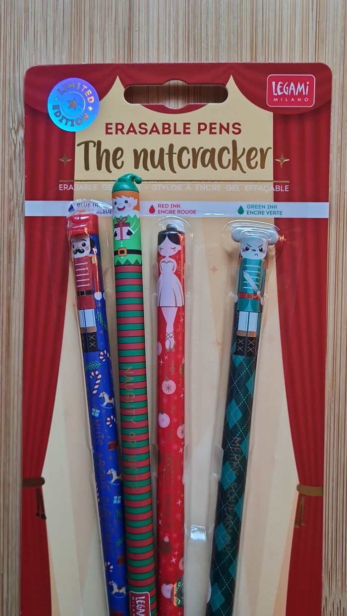 Legami Effaçables - NEUFS = 4 Stylos -> 1 Set NOEL 2025 : LIMITED EDITION 3 Stylos LEGAMI effaçables : Collection Casse Noisette Nutcracker - Neufs -> 1 Stylo LUTIN De la Collection Noël 2024 Limited Edition Neufs - Authentiques LEGAMI Au besoin, nous avons toutes les éditions Legami Effaçables et Lovely Friends qui existent depuis leurs débuts en 2020, toutes les éditions les plus recherchées, tout n'est pas encore en ligne, nous demander 🥰