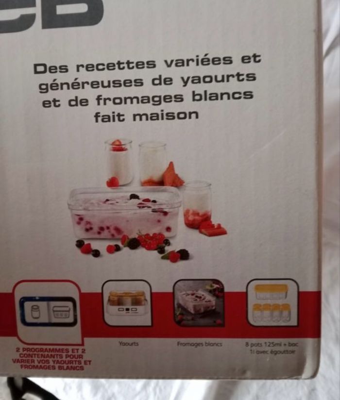 PRATIQUE : Yaourtiere avec deux menus automatiques, yaourt et fromage blanc. FACILE A UTILISER : Écran LCD pour visualiser facilement le programme de cuisson ainsi que le temps de cuisson. ACCESSOIRES INCLUS : 8 pots en verre de 125 ml avec couvercle, un bac avec égoutoire pour un litre de fromage frais, un livret de 10 recettes. COMPACT : pour un rangement facile. NETTOYAGE FACILE : les pots, le bac ainsi que les couvercles sont compatibles lave-vaisselle