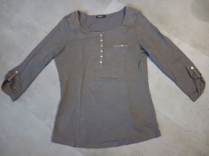 top taupe manches longues fluide Taille 1 GDM Grain de malice Bouton de rechange Neuf - photo numéro 2