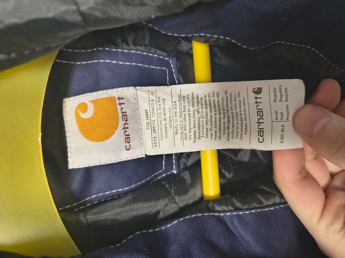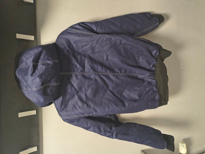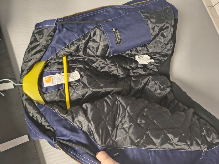 Je vends cette magnifique veste Carhartt "Rework" en coloris bleu marine avec surpiqûres contrastantes blanches. Elle est en très bon état, avec une toile robuste et une doublure matelassée parfaite pour la mi-saison ou l'hiver. C'est quoi un article "Rework" ? Un vêtement rework est une pièce authentique qui a été retravaillée ou customisée pour lui donner une nouvelle vie, souvent en mélangeant des éléments vintage pour créer un modèle unique. Dans ce cas précis, la coupe et les finitions ont été modernisées tout en gardant l’ADN ultra-résistant de Carhartt. Marque : Carhartt Taille : S (Small) - Coupe Regular Couleur : Bleu marine (Navy) Détails : Étiquette Union Labor (UFCW), fabriquée aux USA, fermeture éclair en laiton, capuche et poches fonctionnelles. État : Très bon état. Une pièce rare, solide et stylée qui ne court pas les rues !