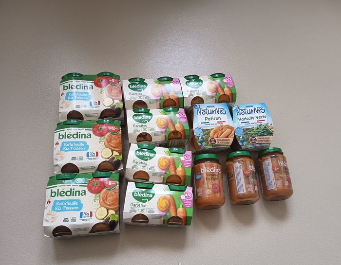 Vends lot de petits pots pour bébé. Différents âges : 4/6 mois et 8 mois. Produits non ouverts. DLC à partir de 05/2026. Idéal pour faire du stock à petit prix. 💰 Lot complet : 4€ 📦 Envoi standard possible