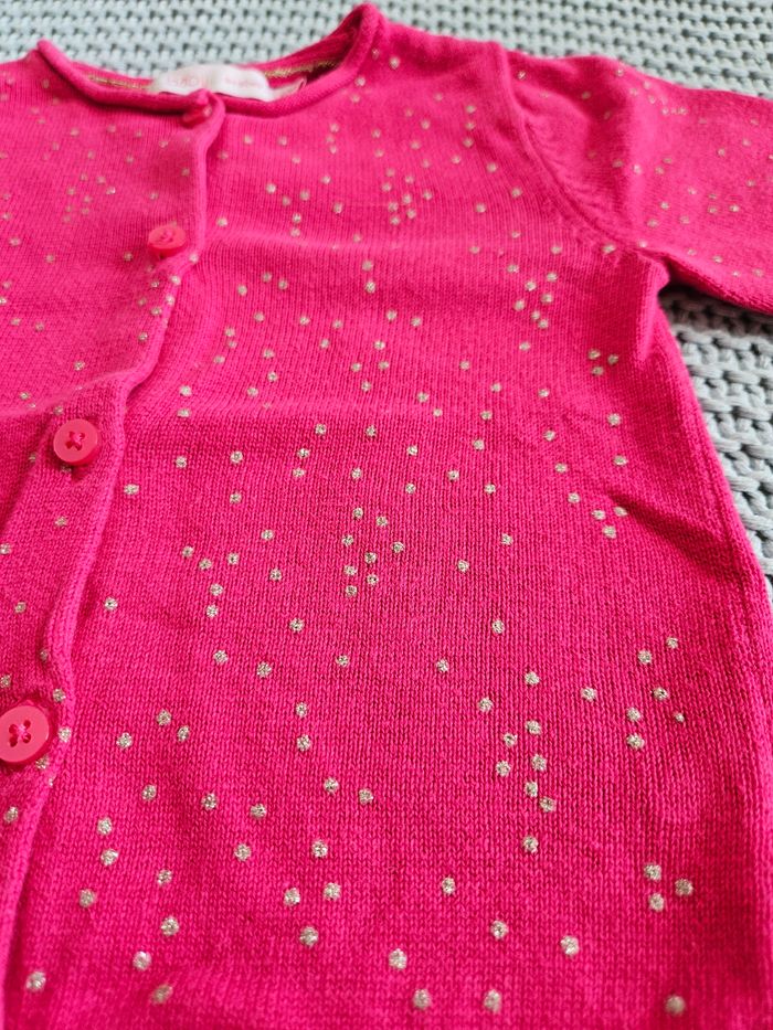 Veste rose fuschia à pois paillettes argentées. Marque Baby by Gémo. Taille 6 mois. #mimidacfille #mimidacfille6mois