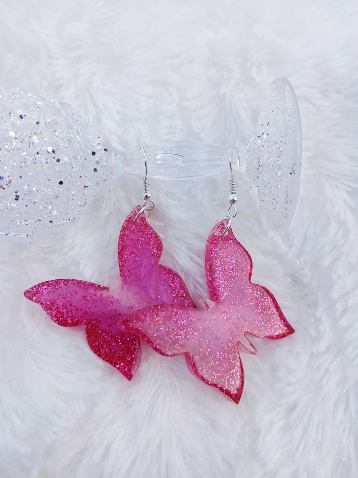 Boucles d'oreilles papillons rose pailleté
