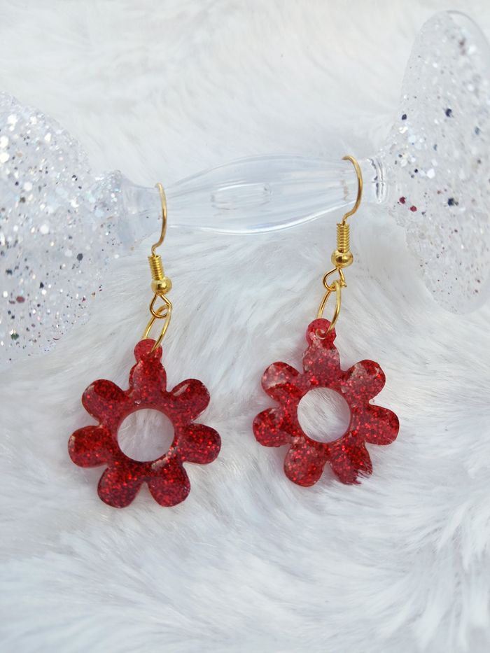 Boucles d'oreilles fleurs rouges pailletées