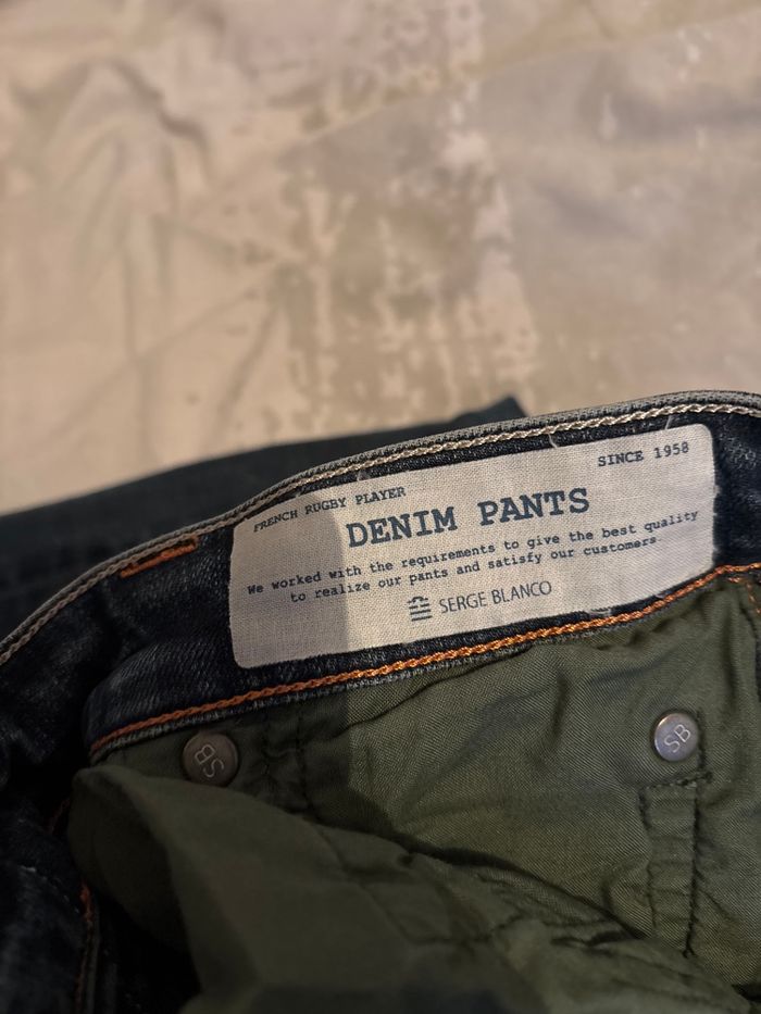 Vend ce jean pour homme, je ne connais pas la taille, c’est pour ça que j’ai pris les étiquettes en photo