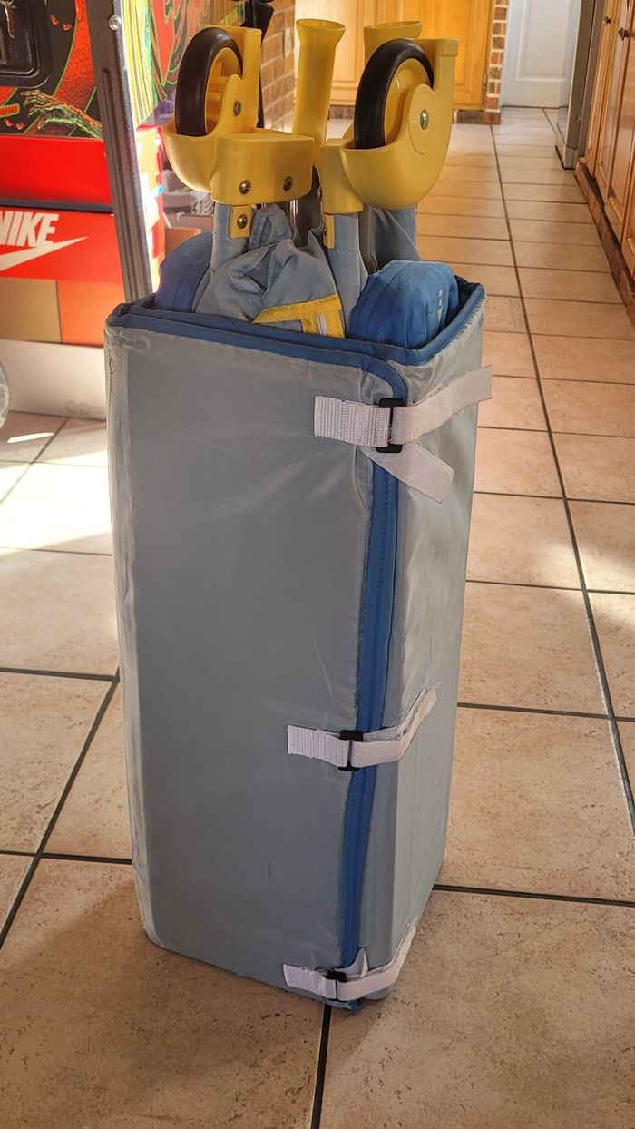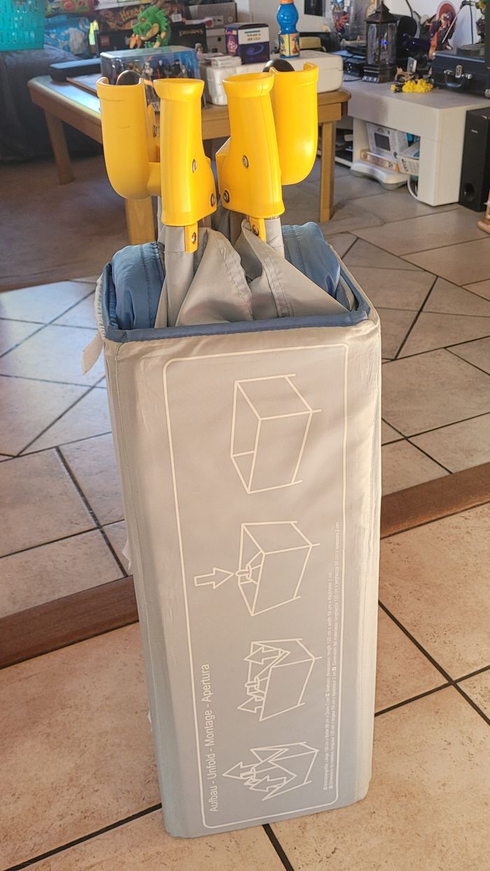 Lit parapluie Winnie L'ourson complet avec arche comprenant 3 peluches, socle de lit et housse transportable en excellent état. Pas de trou. Maison non fumeur. Très facilement repliable et pratique. A venir chercher sur place. Envoi possible.