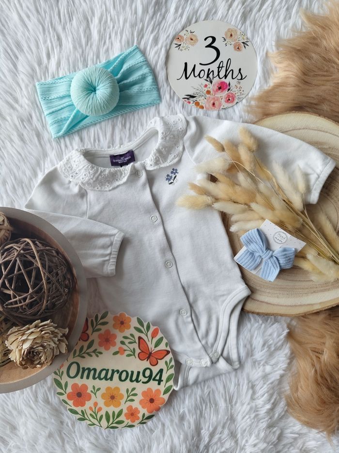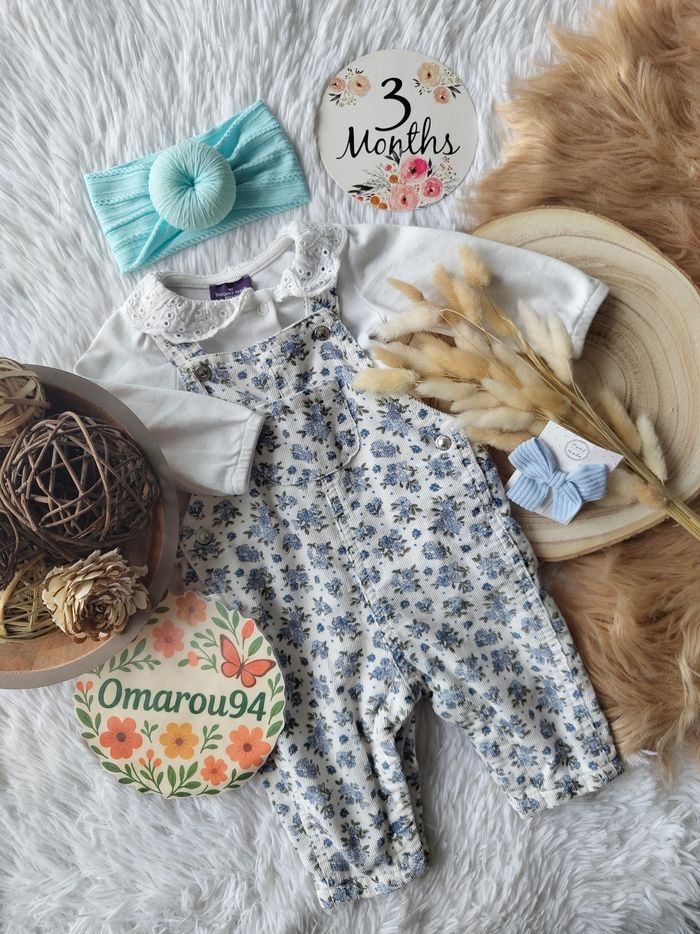 ✅ Excellent état ✅ Ensemble magnifique complet 5 pièces collection "déjeuner à Montmartre" ✅ Gilet tricot col claudine + body manches longues col claudine+ salopette velours fleurie ✅ Bandeau cheveux Neuf + barrettes cheveux neuves ✅ Automne/hiver