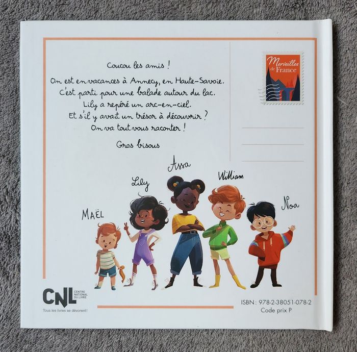 Résumé : Coucou les amis! On est en vacances à Annecy, en Haute-Savoie. C'est parti pour une balade autour du Lac. Lily a repéré un arc-en-ciel. Et s'il avait un Trésor à découvrir ?.. On va tout vous raconter!.. Gros bisous. Année de parution : 2023. Auteur : Virginie Grimaldi. Illustratrice : Flavie Pichot. Collection : Merveilles de France. Éditions : Hachette Jeunesse. =) 28 pages. État comme neuf.