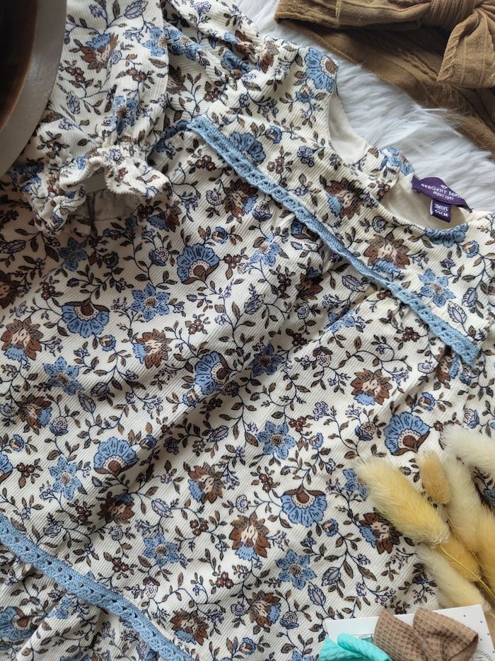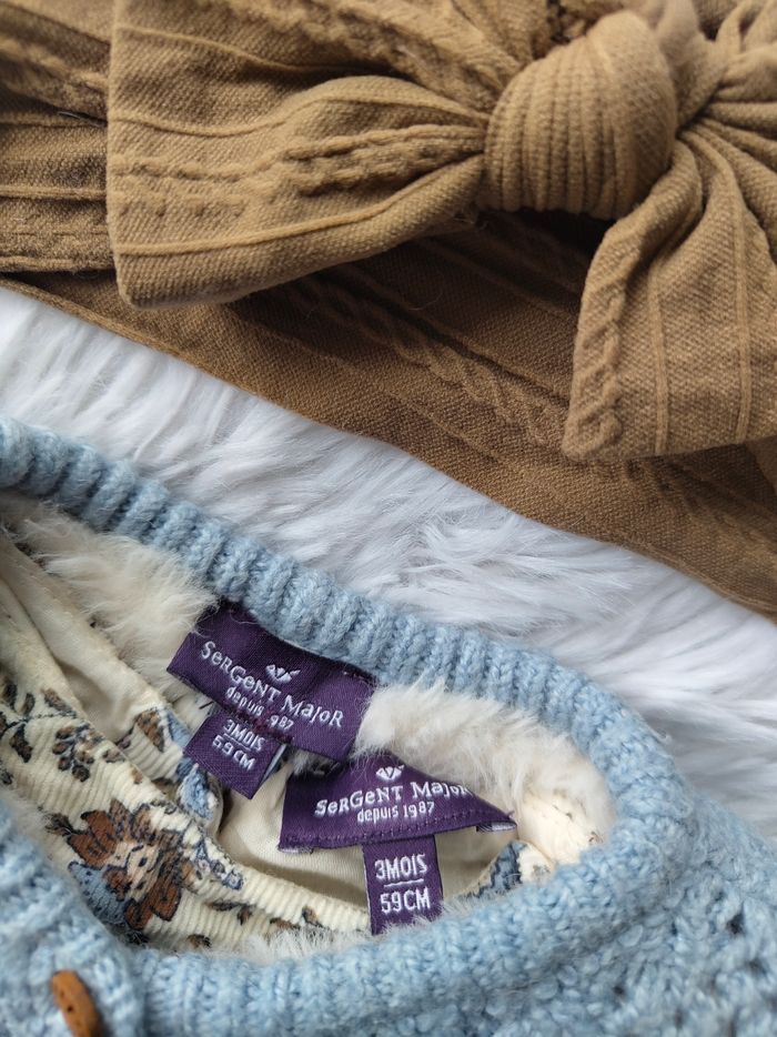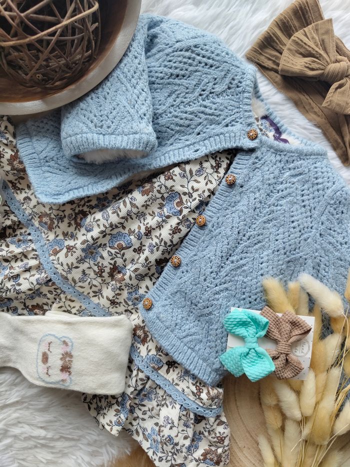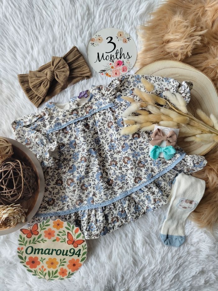 ✅ Excellent état ✅ Ensemble magnifique complet 5 pièces collection "Moka à Ottawa" ✅ Gilet tricot intérieur doublé fourrure + robe velours fleurie manches longues et collant ✅ Bandeau cheveux Neuf ✅ Automne/hiver