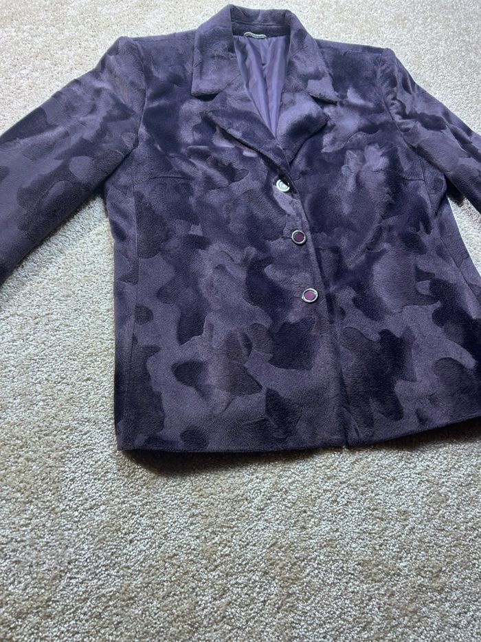 💜✨ BLAZER VINTAGE “LA DÉSIRADE” – EFFET MOUTON / PEAU DE VACHE – MAUVE VIOLET – TAILLE M ✨💜 - photo numéro 7