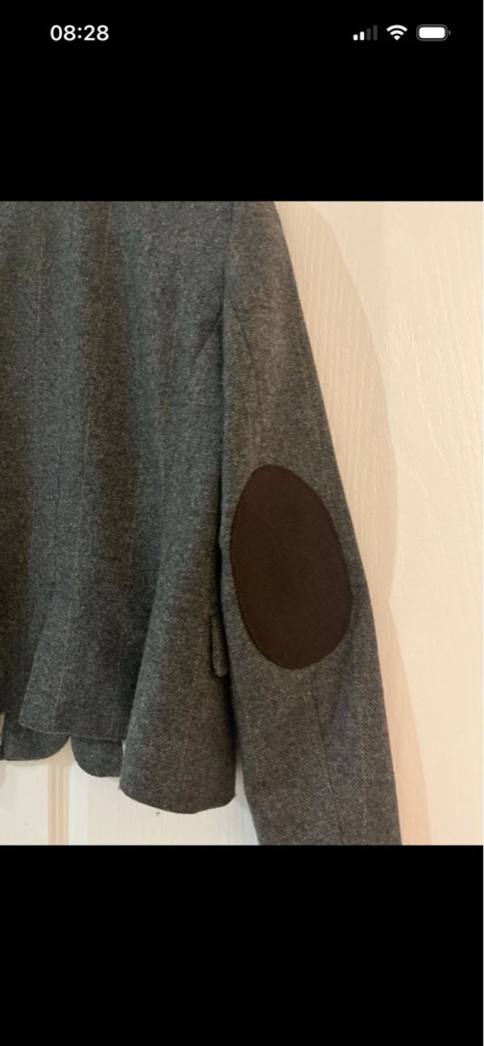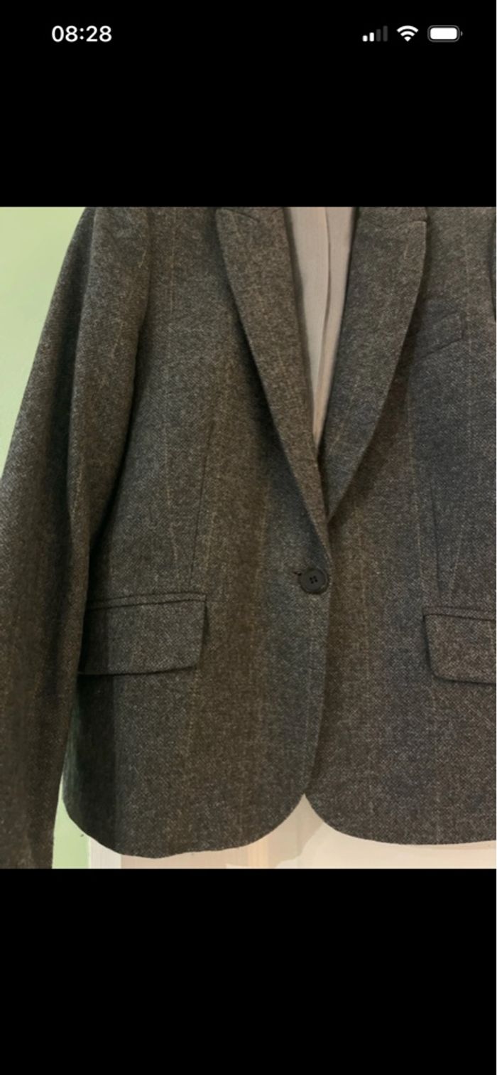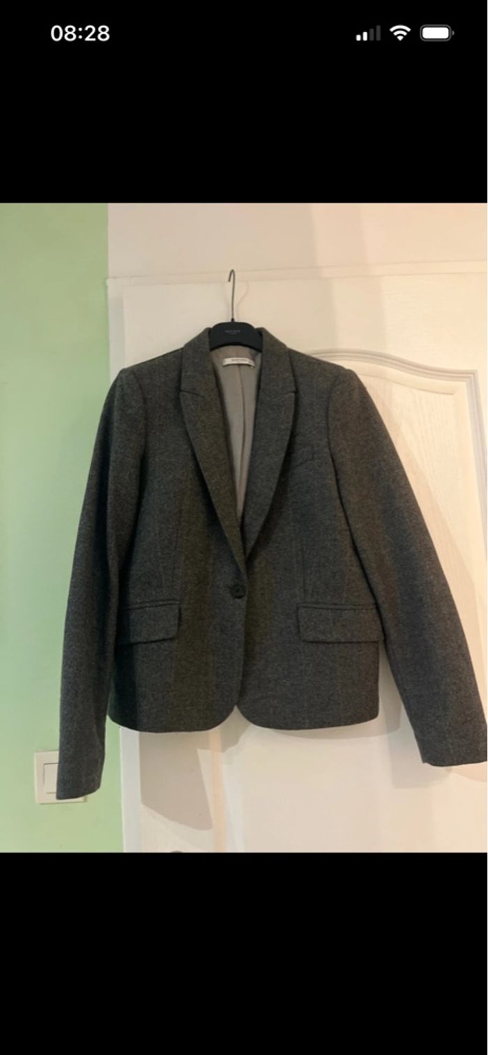Veste costume cintrée de couleur grise pour femme, de la marque mango, portée une ou deux fois, en très très bon état, taille L mais plutôt M, aucunes marques d’usure ou de défauts