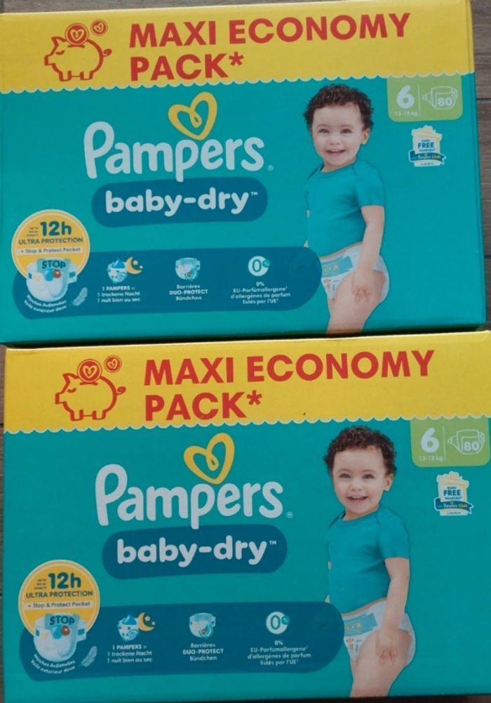 2 maxis economy packs Pampers baby dry taille 6. Total de 160 couches