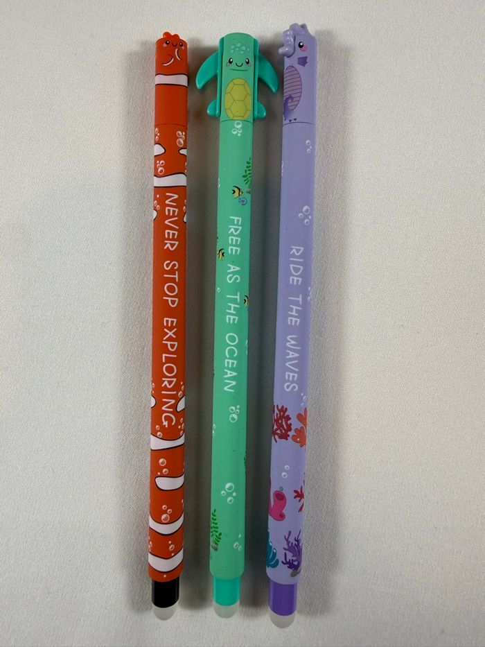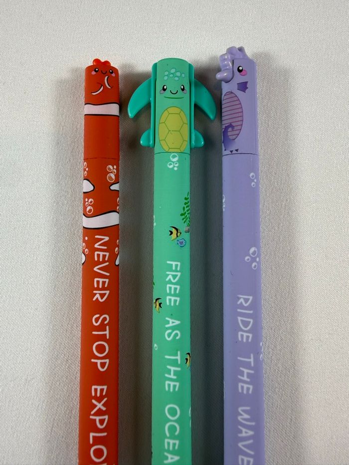 Lot de 3 Stylos animaux thème Océan 🌊🐢 -Tortue de mer -Hippocampe -Nemo ✨Effaçable et rechargeable ⭐️ Compatible avec les recharges Legami 🎁 Idéal pour offrir ou pour collectionner ! 🆕 Neufs 📦 Envoi rapide et soigné 🔍 Et jetez un œil à mon dressing pour découvrir d’autres modèles !