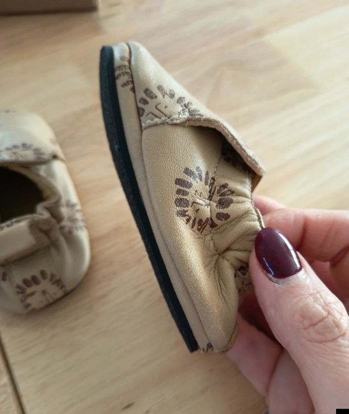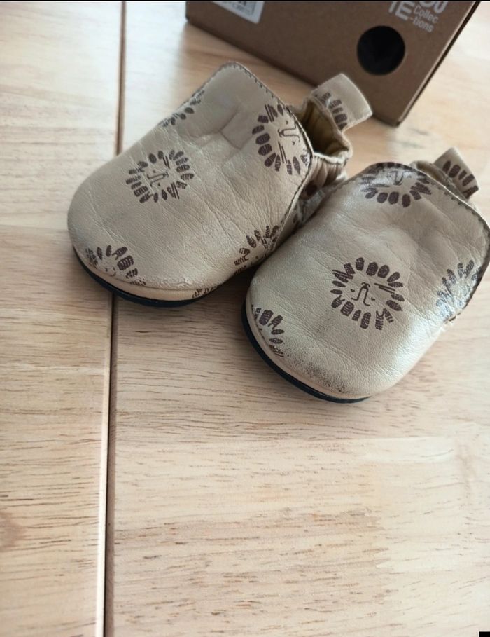 Chaussons en cuir souple, idéal pour les premiers pas de bébé. Bon état => n as été utilisé que très peu Très légère petite trace d' usure du cuir (uniquement à l avant) mais semelle et reste de du chausson impeccable. ✓ Premier achat Fournit dans sa boîte d'origine Valeur à l' achat 29,99€