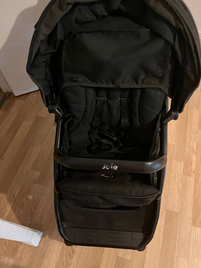Poussette double Joie pour jumeaux en bon état. Modèle côte à côte, pratique et maniable. Les deux sièges s’inclinent, capotes en bon état. Se plie facilement et roule parfaitement. Idéale pour jumeaux ou enfants d’âges rapprochés. - photo numéro 3