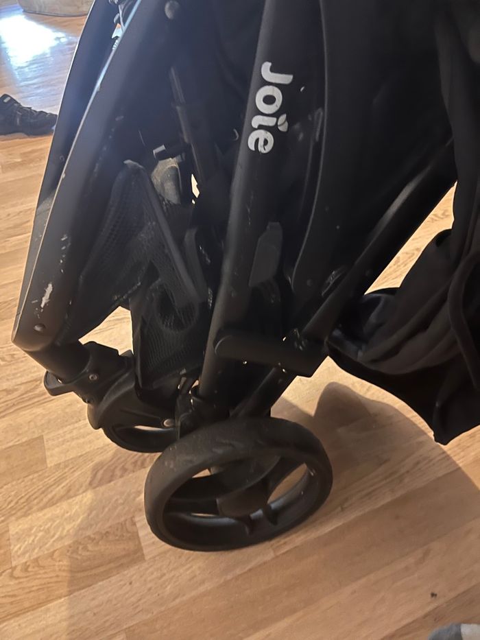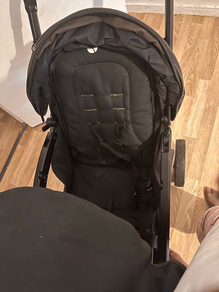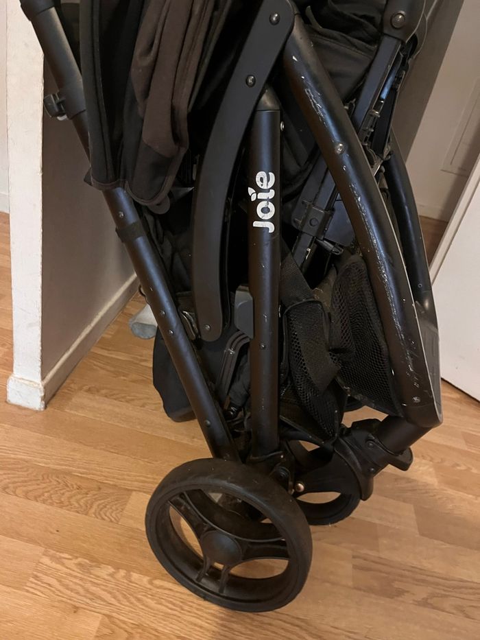 Poussette double Joie pour jumeaux en bon état. Modèle côte à côte, pratique et maniable. Les deux sièges s’inclinent, capotes en bon état. Se plie facilement et roule parfaitement. Idéale pour jumeaux ou enfants d’âges rapprochés. - photo numéro 5